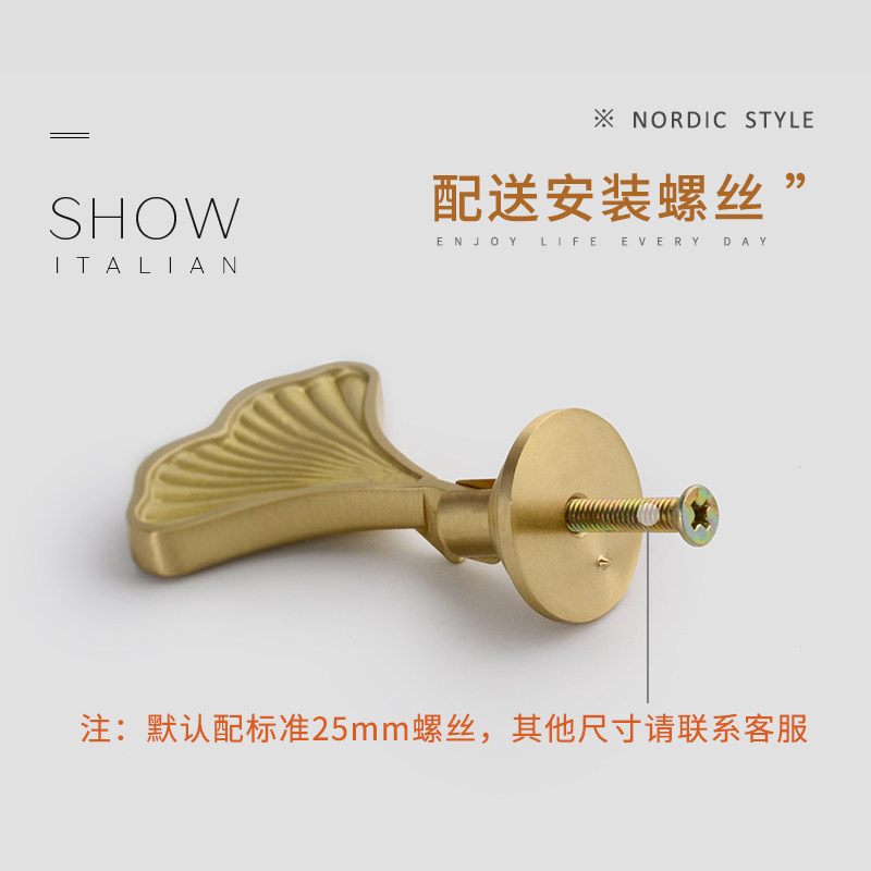 New Chinese personality creative pendant single hole brass handle Nordic wardrobe door handle drawer ginkgo leaf light luxury