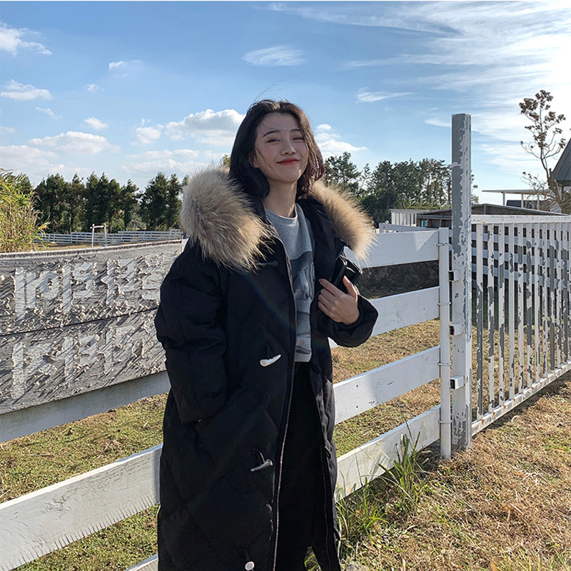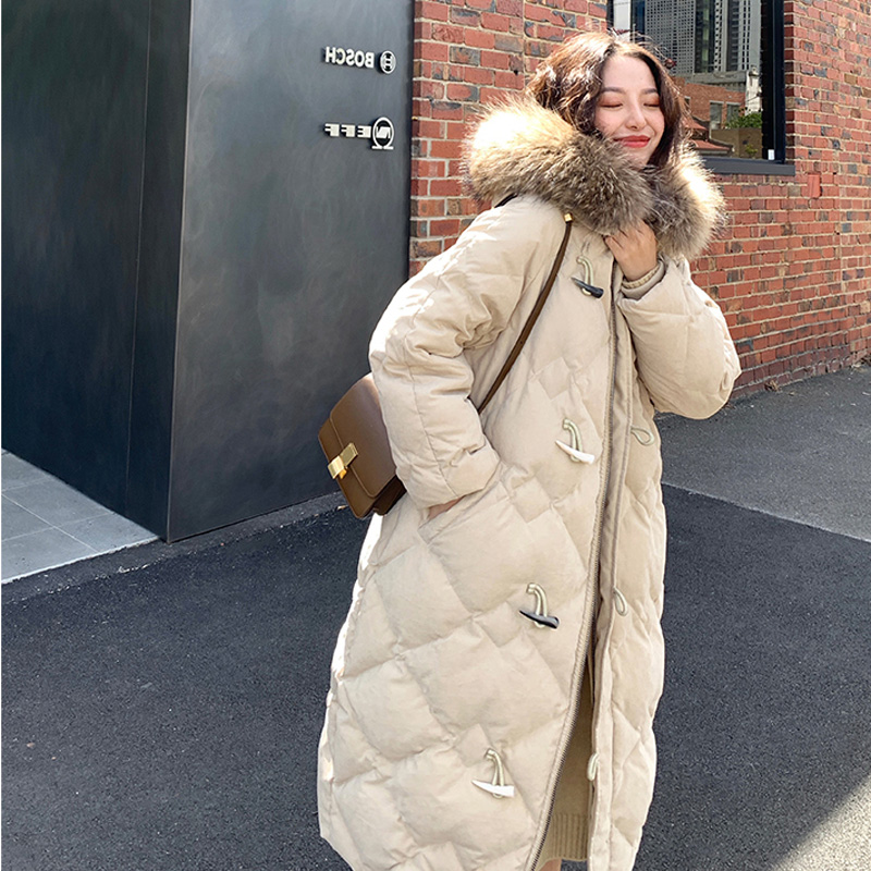 European Station 2019 The new white duck suede woman with a long version of a knee-horn-buttoned Euro-goods burst