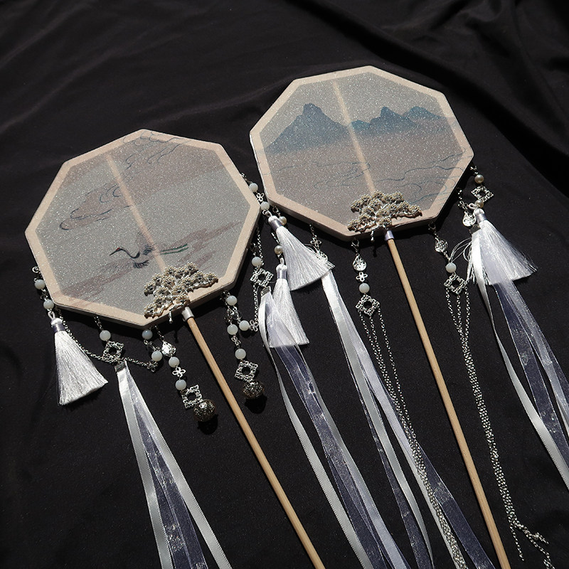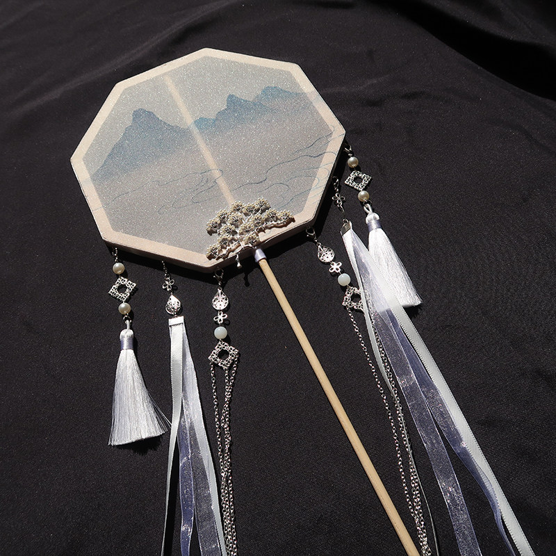 Cloud is not known for long handle group fan finished goods ancient wind Han clothes accessories Flow Su Palace fan breaking cloud fan handmade photography