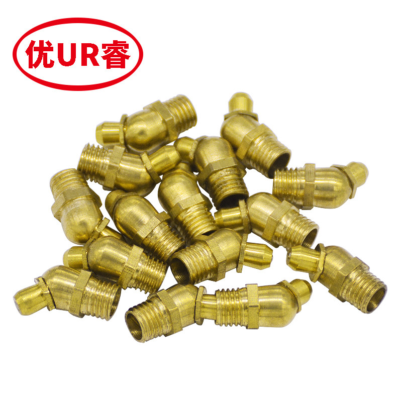 National Label cream mouth Gun Head Bull Oil Nozzle Elbow Brass Oil Nozzle 45-degree oil nozzle Yellow oil gun oil nozzle M6M8M10M12