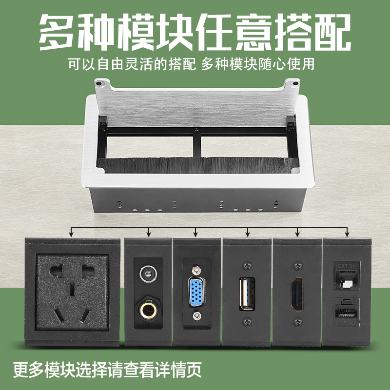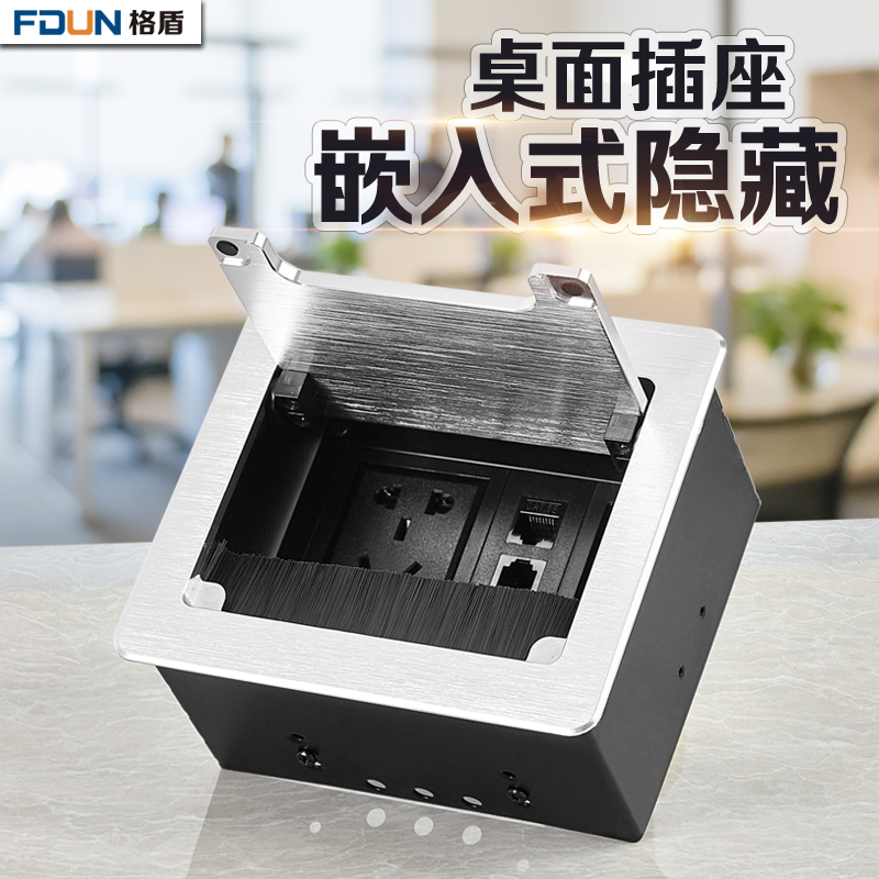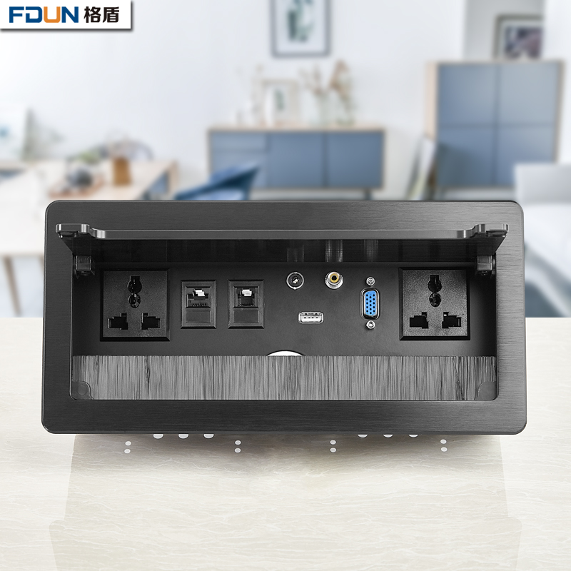 Embedded hidden desktop socket flip cover with brush office conference table information socket multimedia junction box