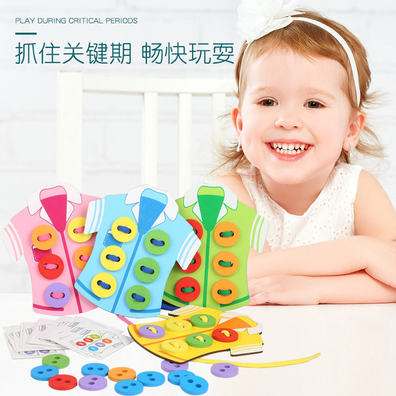 Children Early taught threading slit Sewing Son Game Kindergarten Baby Wearing Rope Hand-eye Coordination Puzzle Toy 0-3-6 years old