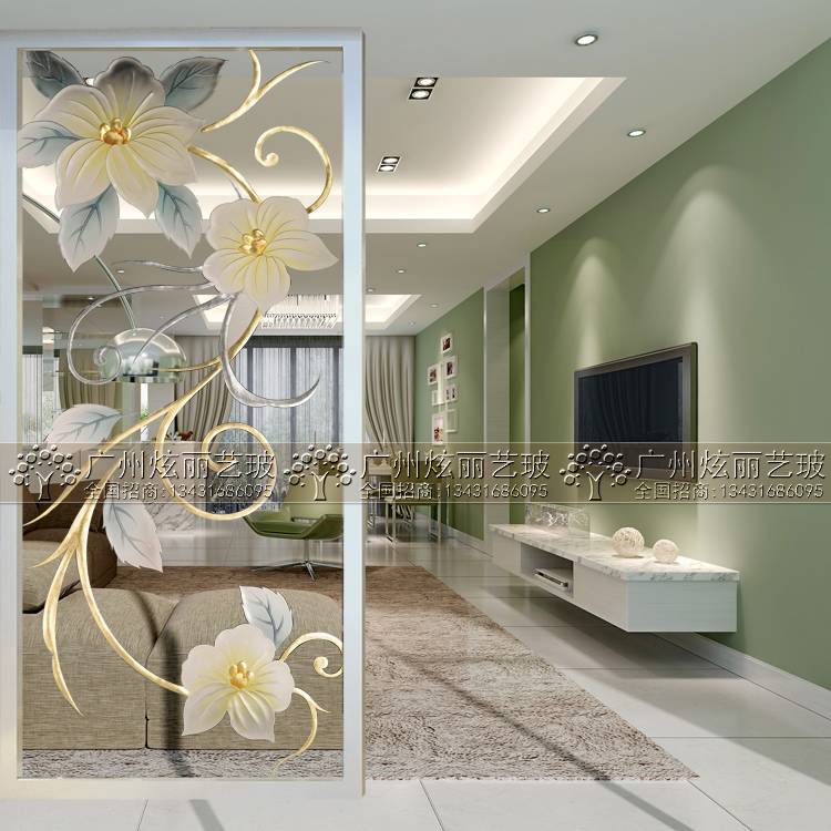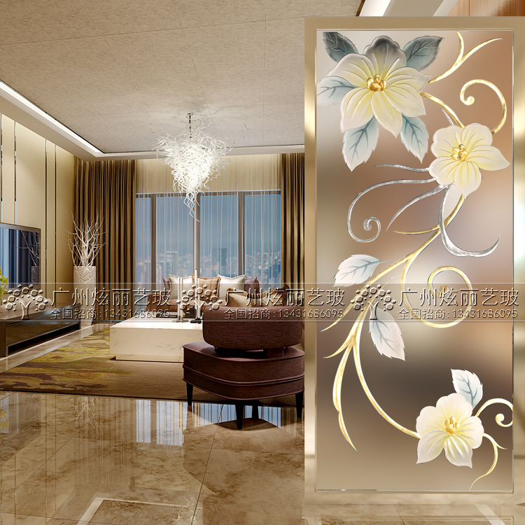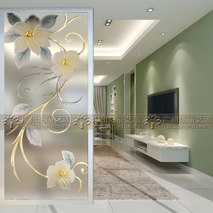 Modern minimalist art glass partition decorative screen Entrance entrance bath room Frosted translucent carved tempered glass