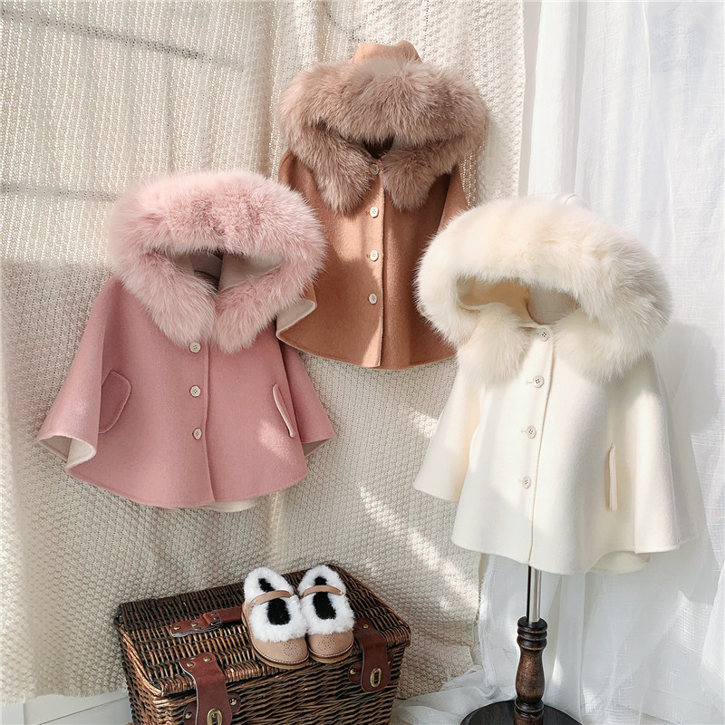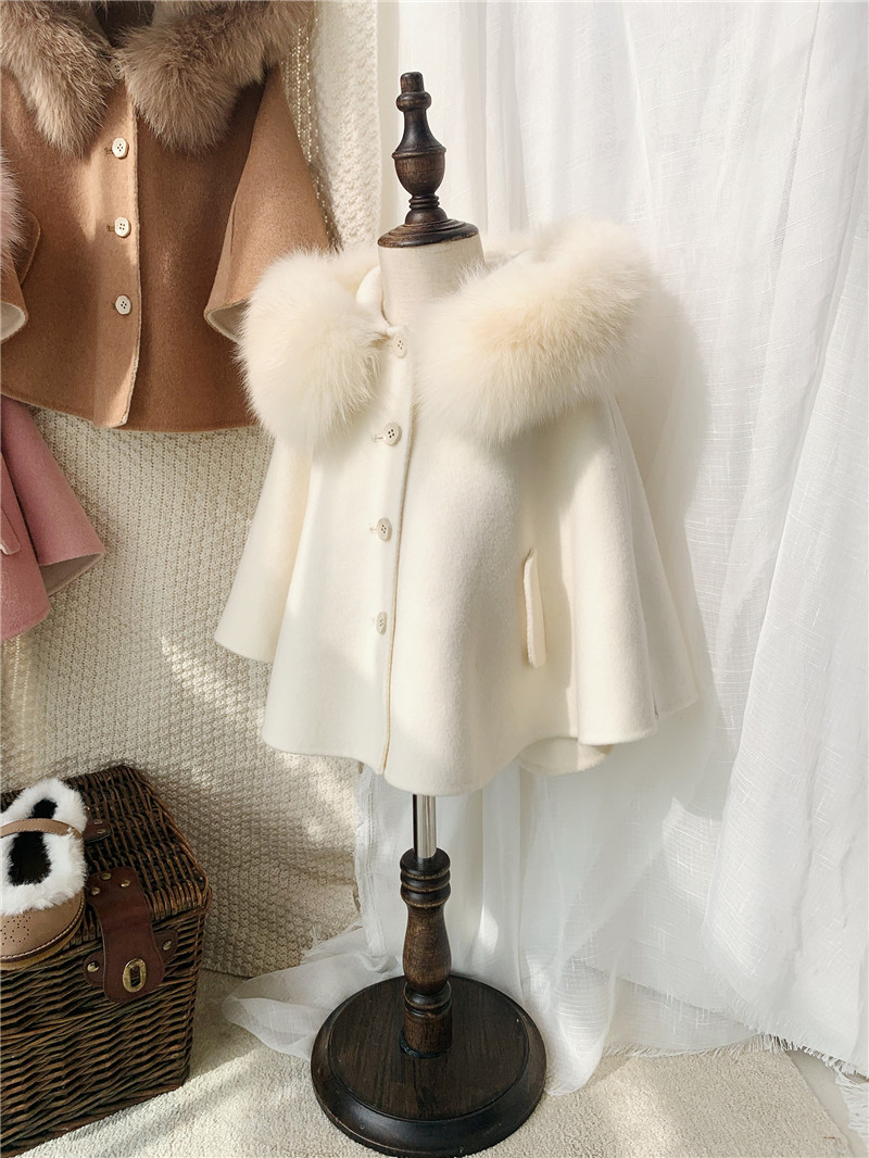 Spot Petit Nez] retro 100% wool double-sided cashmere handmade large coat fox fur collar cloak