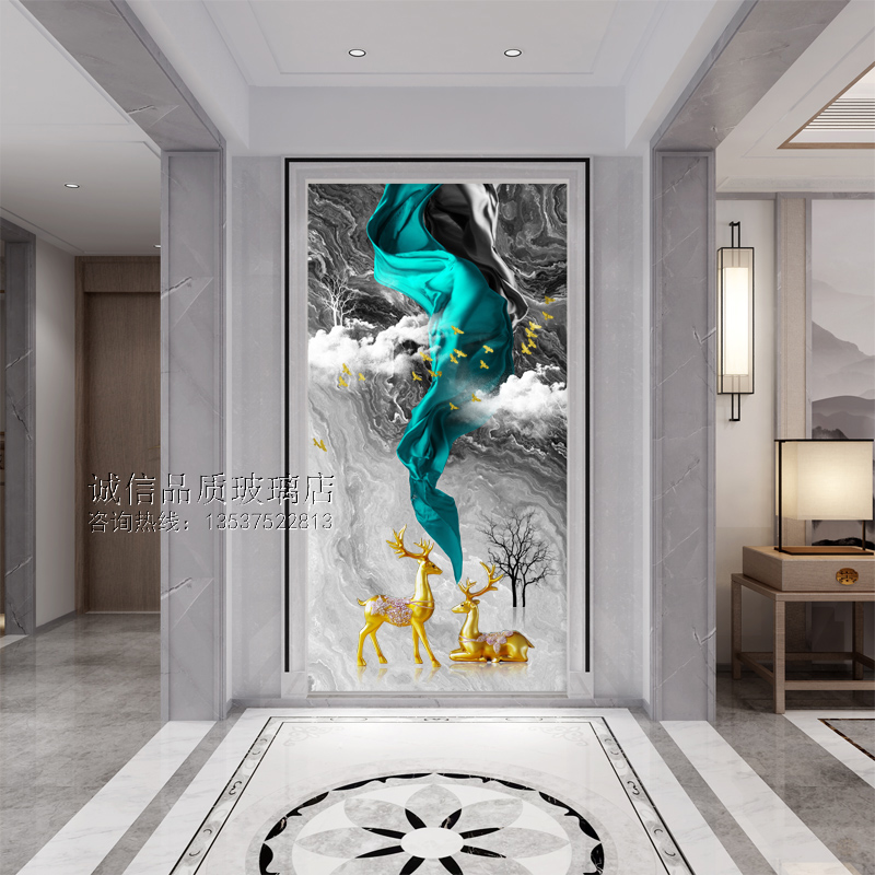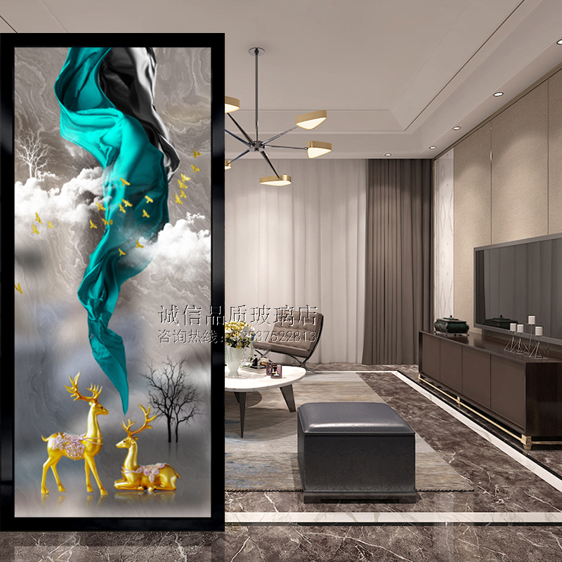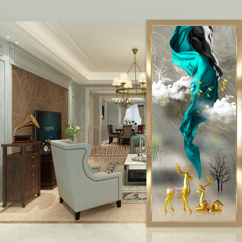 Art glass Nordic screen partition double-sided matte translucent abstract entrance background wall tempered painted craft deer