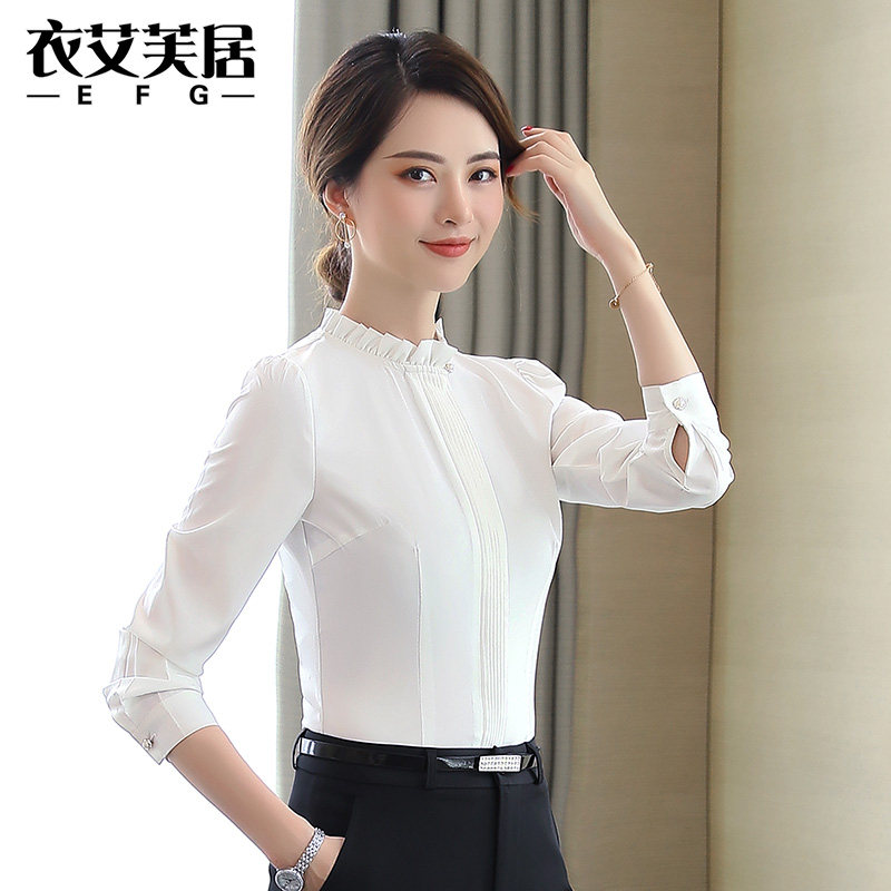 Snowspun Shirt Woman Long Sleeve Career Working Uniform Front Desk Shirt Fashion Foreign Pie Little Fresh Jersey Blouse