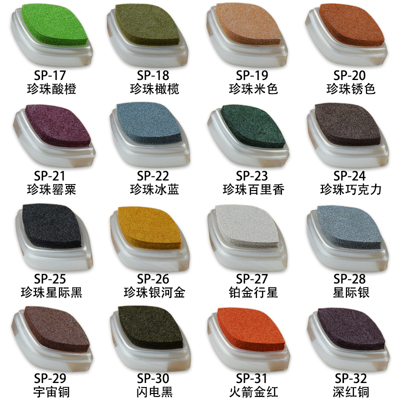 SP-01 Pearl Baby Powder SP-02 Pearl Cherry Powder SP-03 Pearl Violet SP-04 Pearl Rocket Red SP-05 Pearl Turquoise SP-06