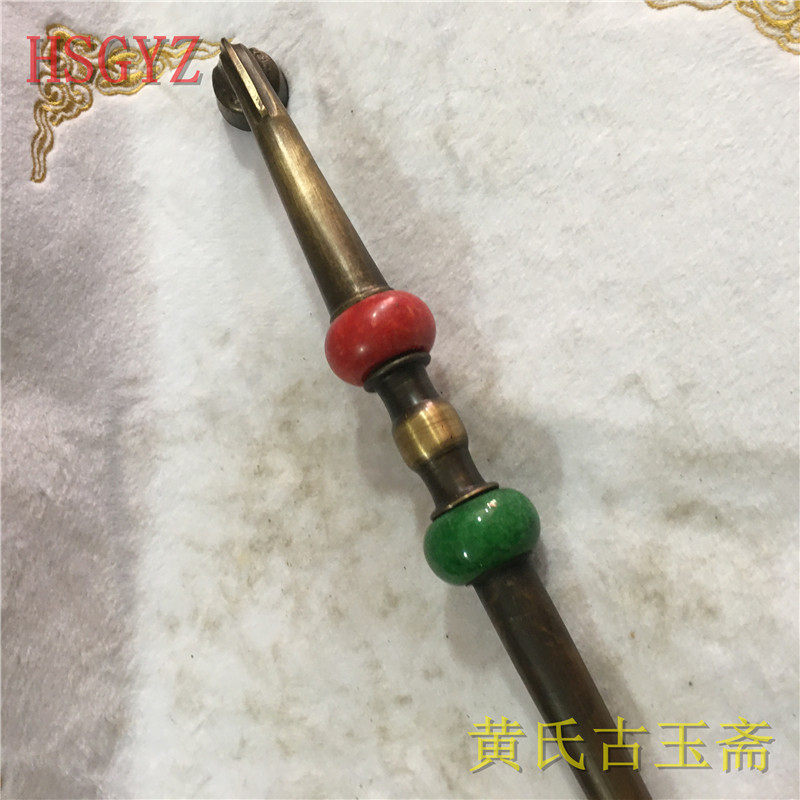 Ming and Qing ancient jade old jade antique copper inlaid gemstone jade dry tobacco bag tobacco bag dry antique antique old object old jade device