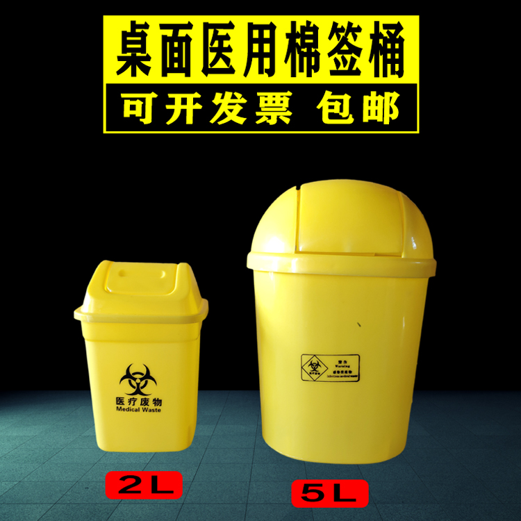 Medical cotton stick barrel small number yellow clamshell mini round medical garbage sharp instrument case desktop square small