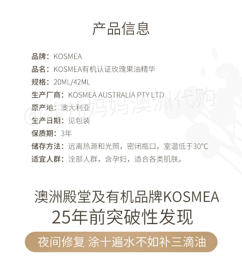 Australian Kosmea Luo Yunxi Tongan Skin Care Staying Night Small Gold Oil Essential Oil ROSE FRUIT OIL ESSENCE OIL 42ml