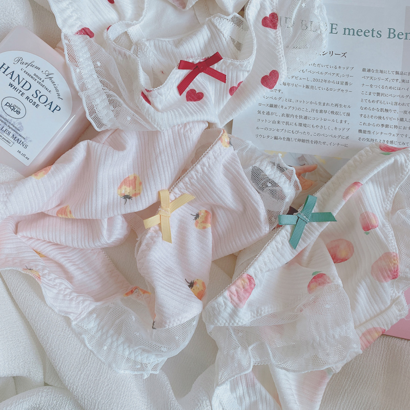 Peach Honey Cotton Pants Women's Day Ensemble Girls Lace Pure Cotton Stalls Cute Sweet And Soft Girls Low Waist Triangle Briefs