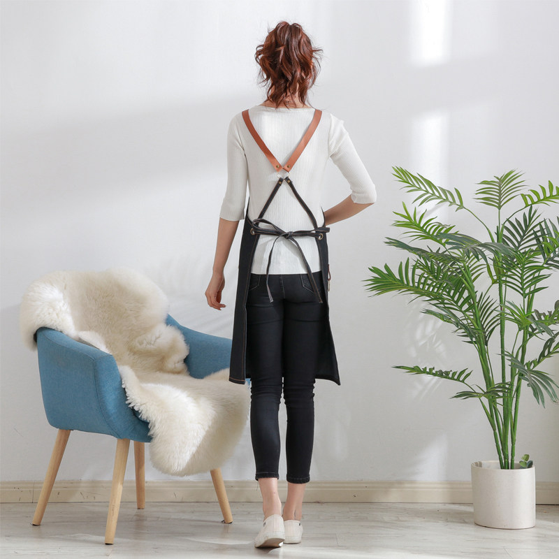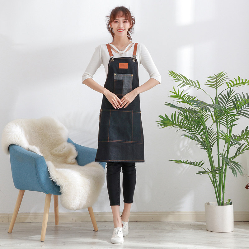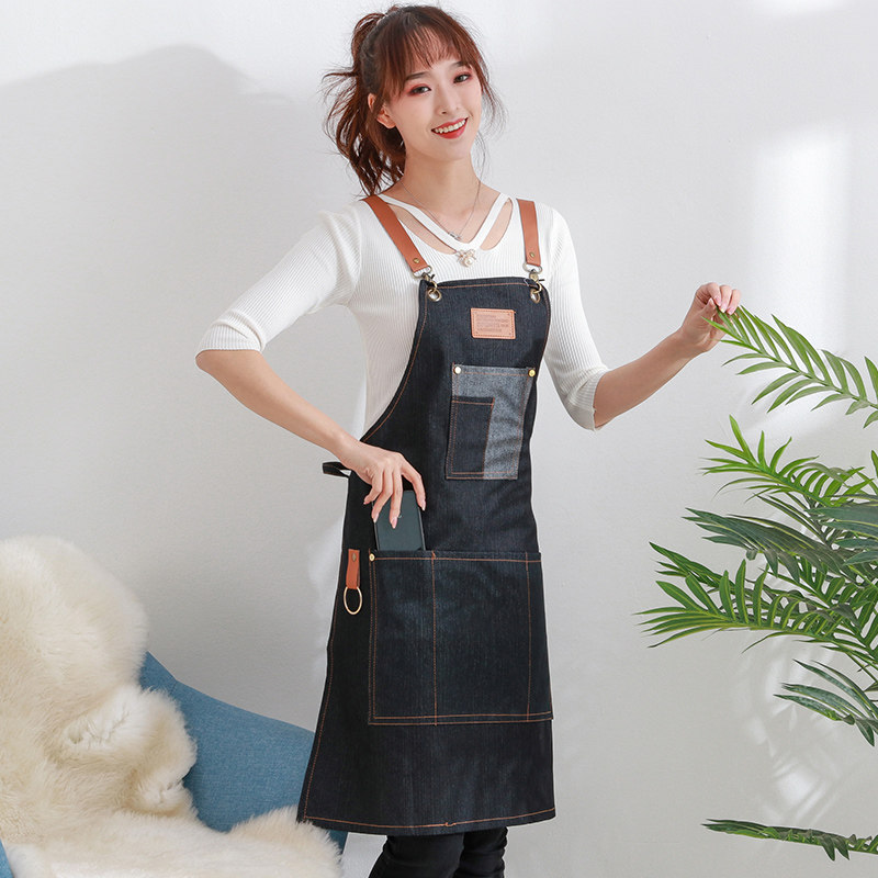 Denim apron barista manicurist restaurant men and women work clothes barber shop Korean fashion hanging neck custom work clothes