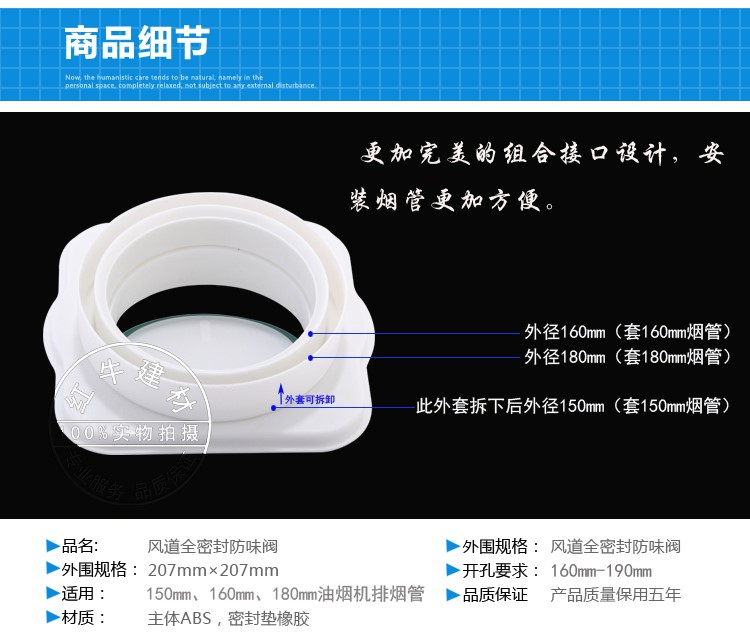 Smoke range hood check valve public flue stop inverse valve smoke exhaust pipe windproof valve 15 16 18 18 universal back smoke