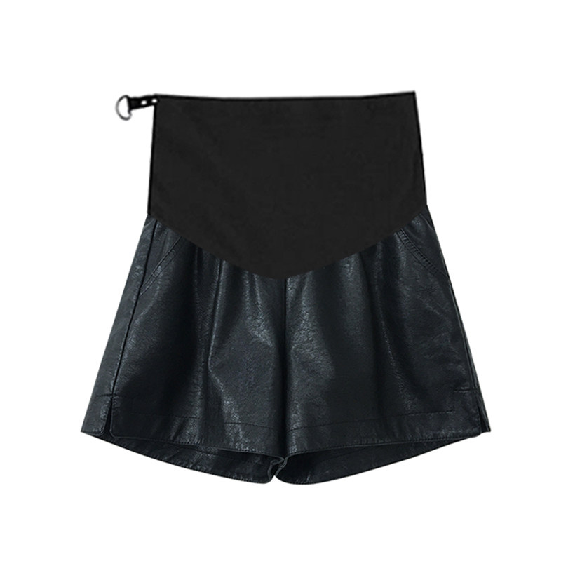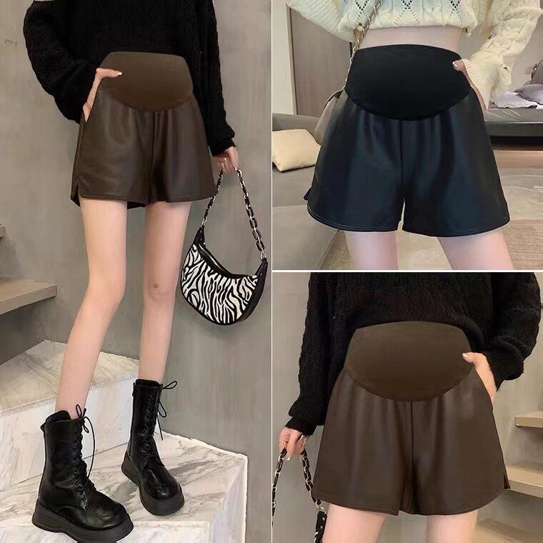 Maternity leather shorts autumn and winter wear 2022 new fashion casual belly PU leather bottoming boots pants tide mom