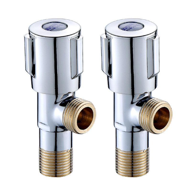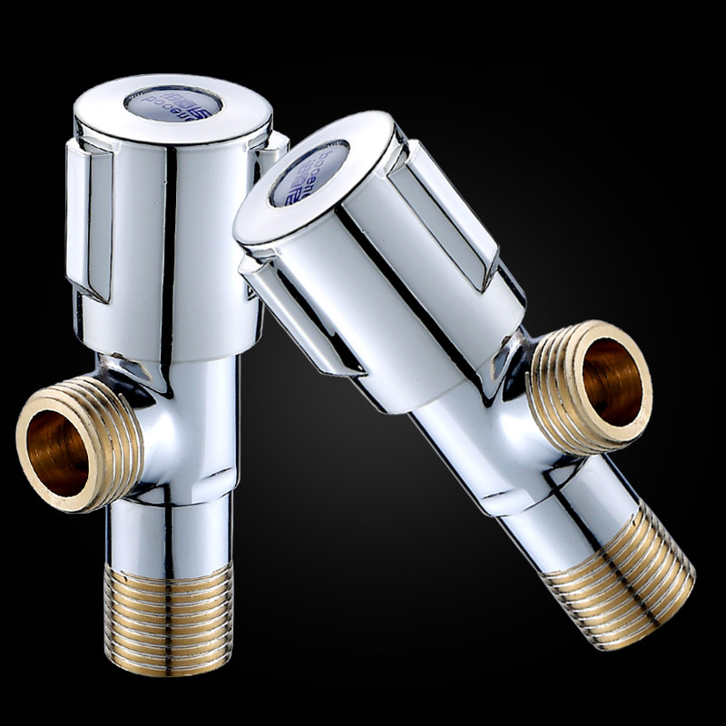 Full copper triangular valve hot and cold water double with 4-minute water-stop valve switch toilet kitchen bathroom dressing room 8-word valve