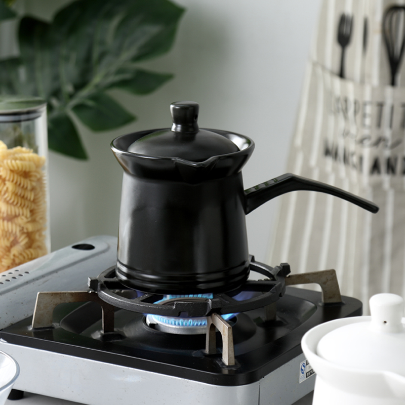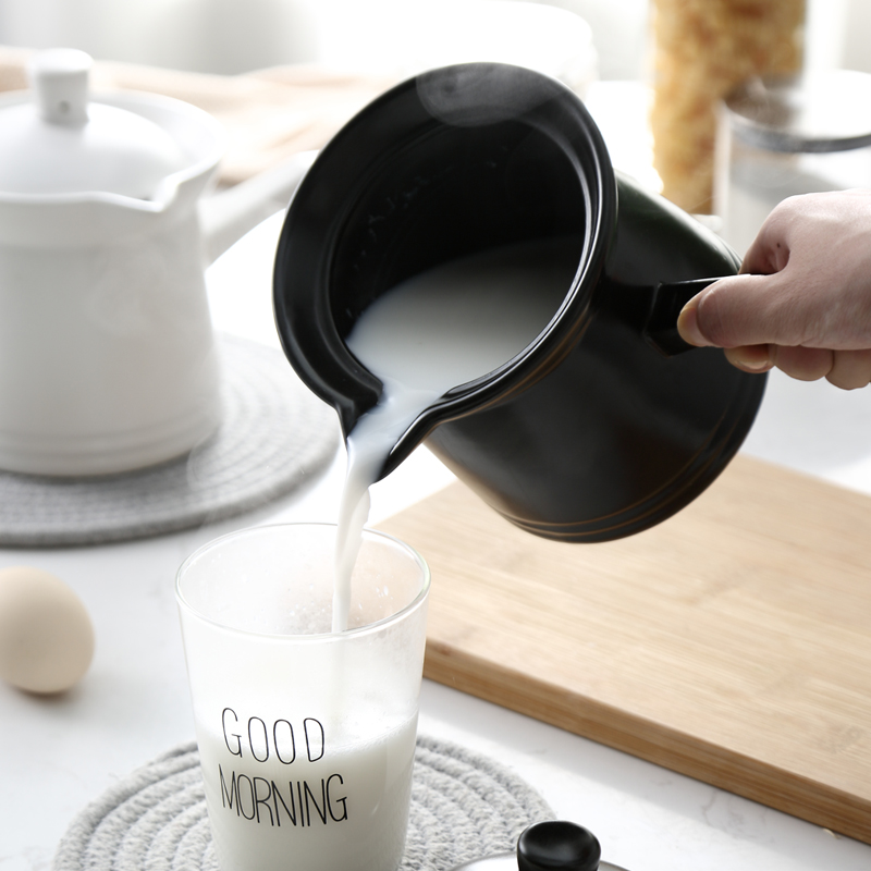 Domeiran household ceramic small milk pot open fire hot milk pot single handle hot milk coffee tea pot flat black crystal furnace