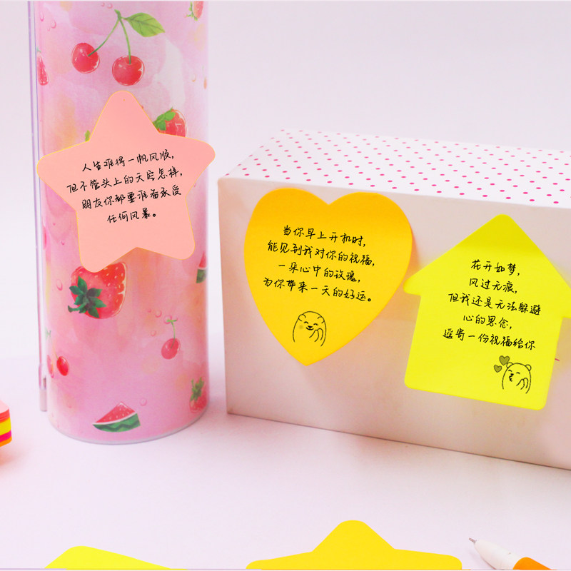 Twelve sets of yellow five-pointed star 3 packs of yellow five-pointed star 5 packs of yellow five-pointed star 10 packs of post-it notes Random 3 packs of post-it notes Random 5 packs of post-it notes Random 10 packs of comma bear heart-shaped