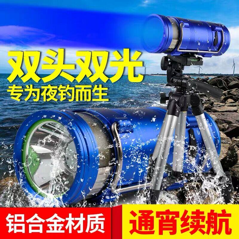 Night fishing light Blue and white light dual light source fishing light strong light waterproof rechargeable super bright flashlight High power night light