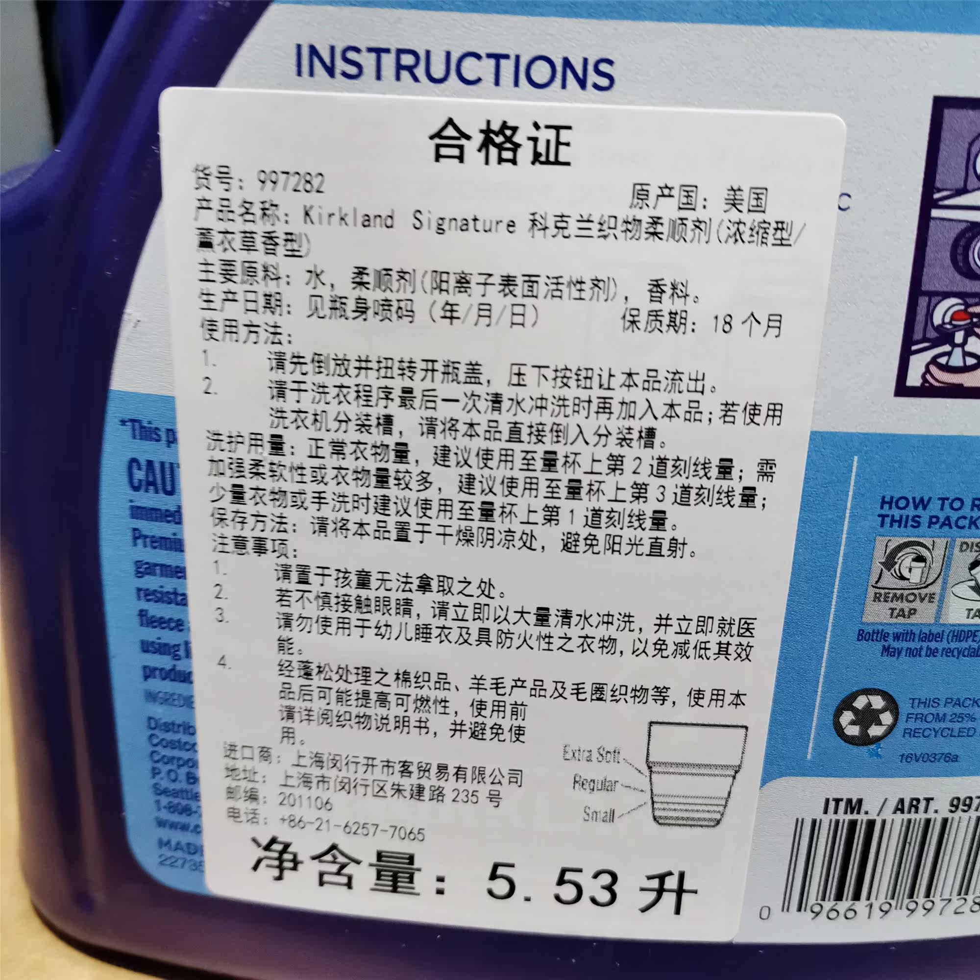 Shanghai COSTCO Buy American imports KIRKLAND Corkland fabric softener 5 53 liters lavender fragrant type