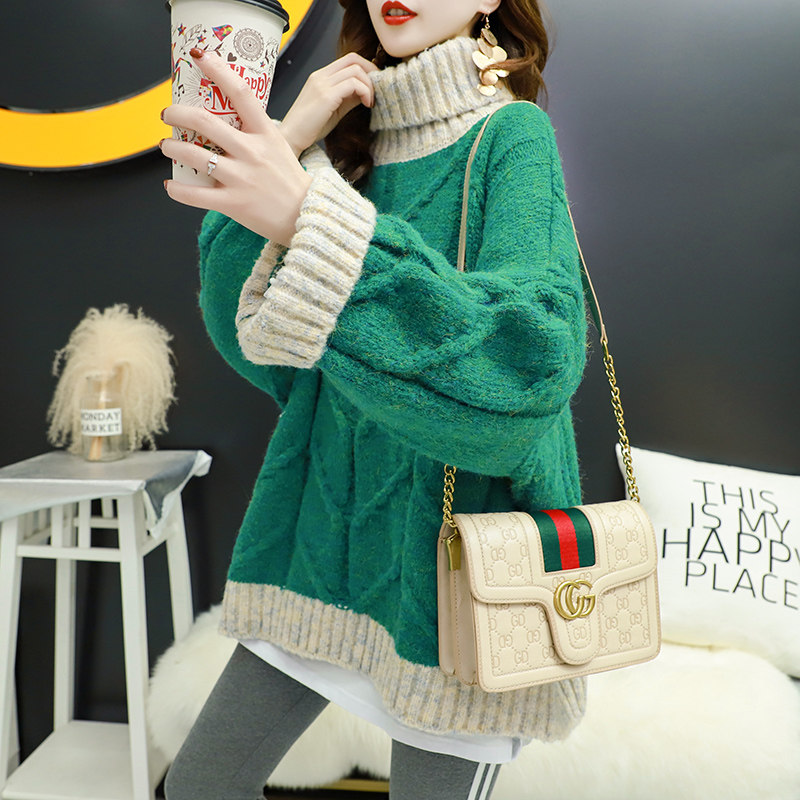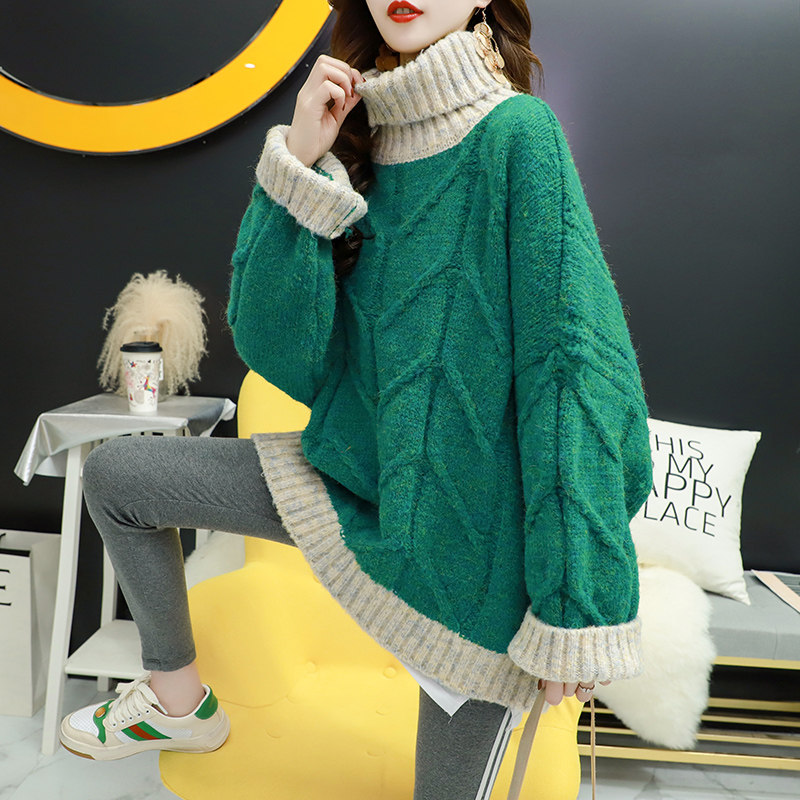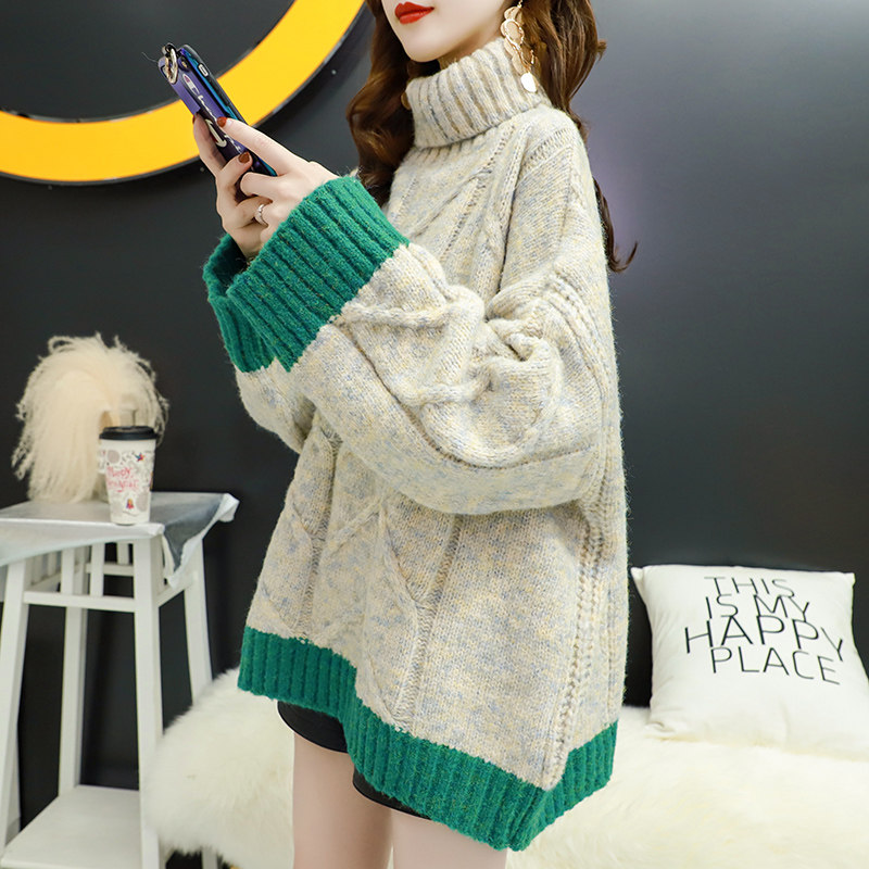 Autumn and winter turtleneck sweater women's Korean version loose outer wear 2019 new style lazy style all-match thick thick line coat