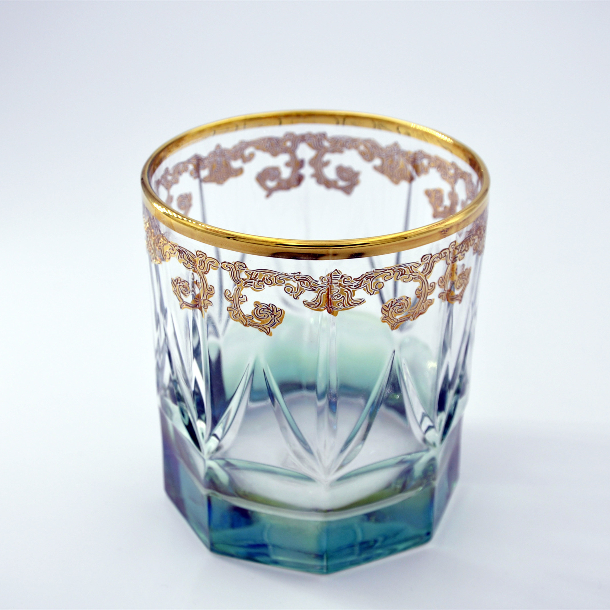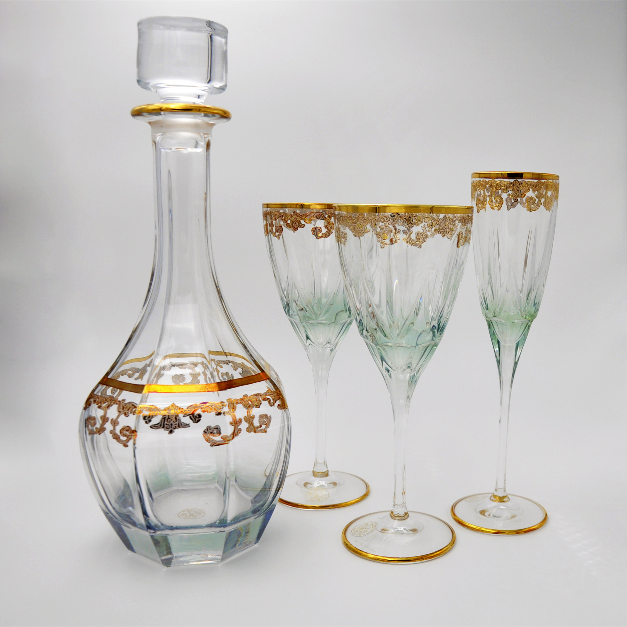 Imported from Italy to Florence handmade TIMON green gold-encrusted hand-painted art crystal wine glasses