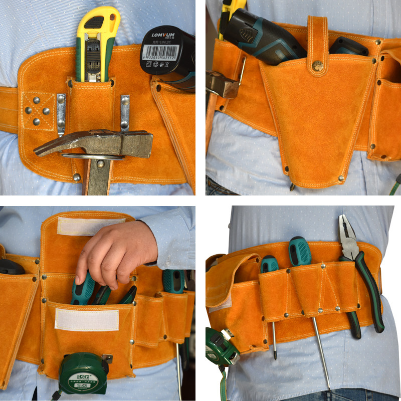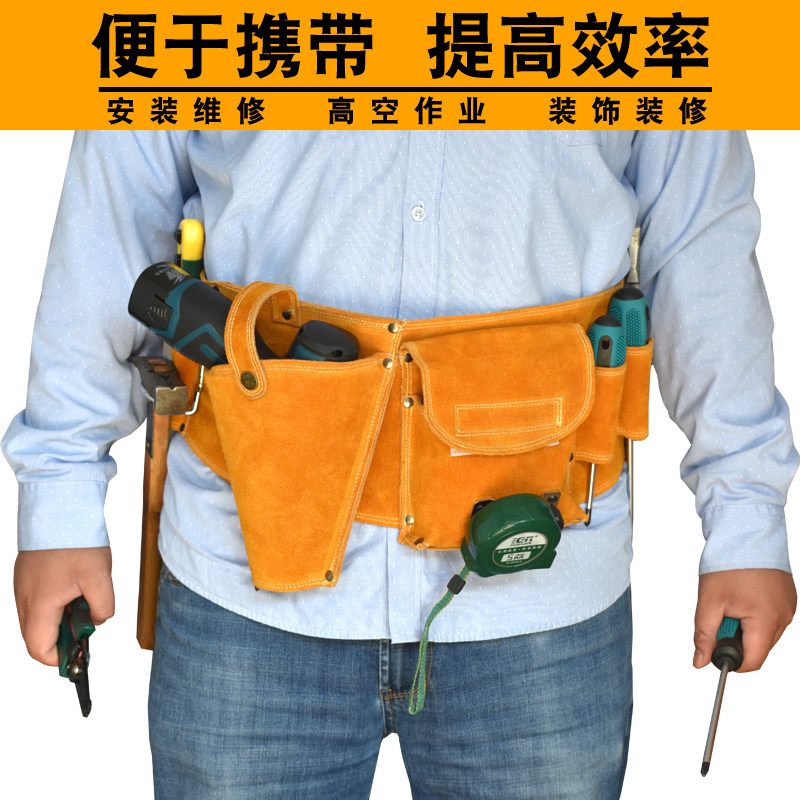 Electrician's Toolkit Waist Shoulder Bag Cowhide Belt Type Wear-Resistant Leather Electric Drill Belt Bag Installation Decoration Woodworking Nail Pocket
