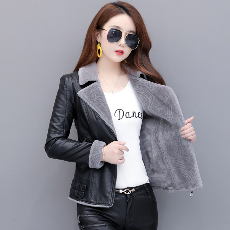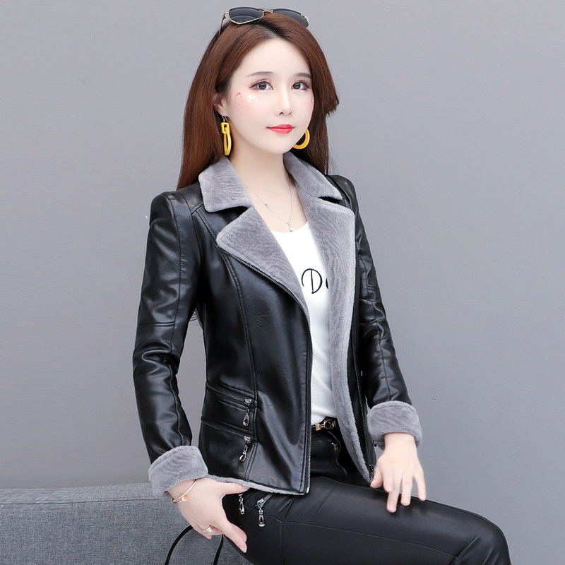 2020 Fall and Winter new Haining coat female plus thickening coat of short fur one - collar coat