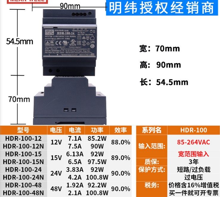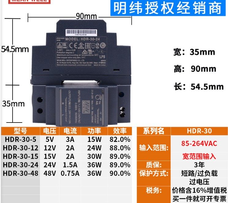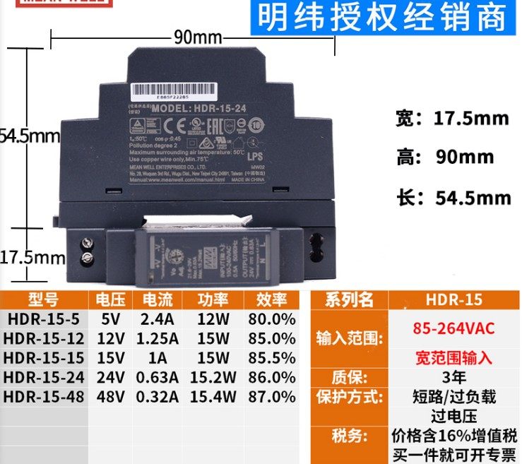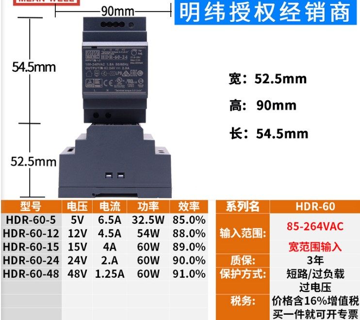 Mingwei HDR rail DR-15 30 60 100 switching power supply 5V 12V 15V 24V 48V industrial control N