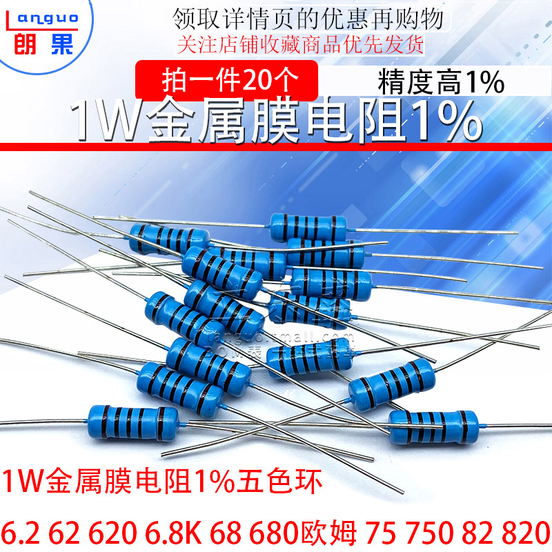 1W metal film resistance 1% colour ring 6 2 62 620 6 8K 68 680 ohm 75 750 82 820