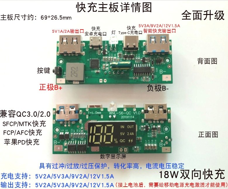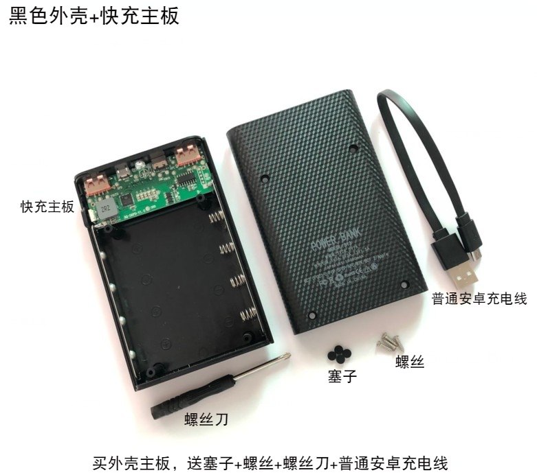 Black 4-section housing 18W fast charging motherboard White 4-section housing 18W fast charging motherboard 18W fast charging motherboard (without housing)Separate 4-section housing (without motherboard)Blue 4-section housing