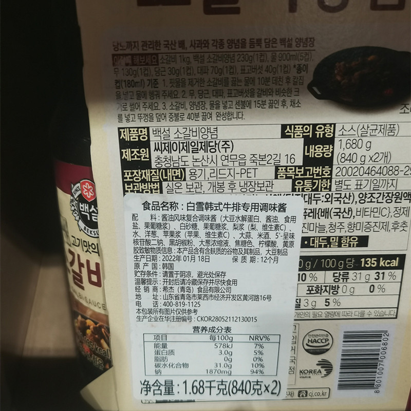 Shanghai Costco CJ BBQ Baixue Korean BBQ Steak Seasoning Sauce 840g