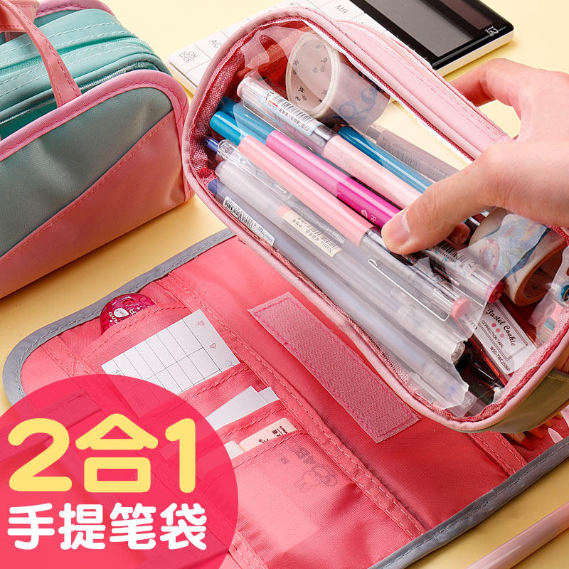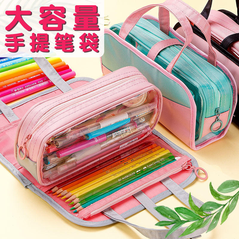 Pen Bag Lady Cute Large Capacity Pencil Case Kindergarten Brief Pencil Bag Pen Box Multifunction Ins Tide Adolescent Girl Hearts Canvas Early First Grade Boys Primary School Children Girls Korea Creativity