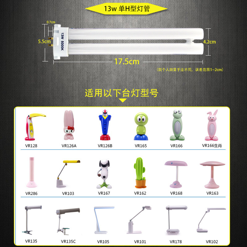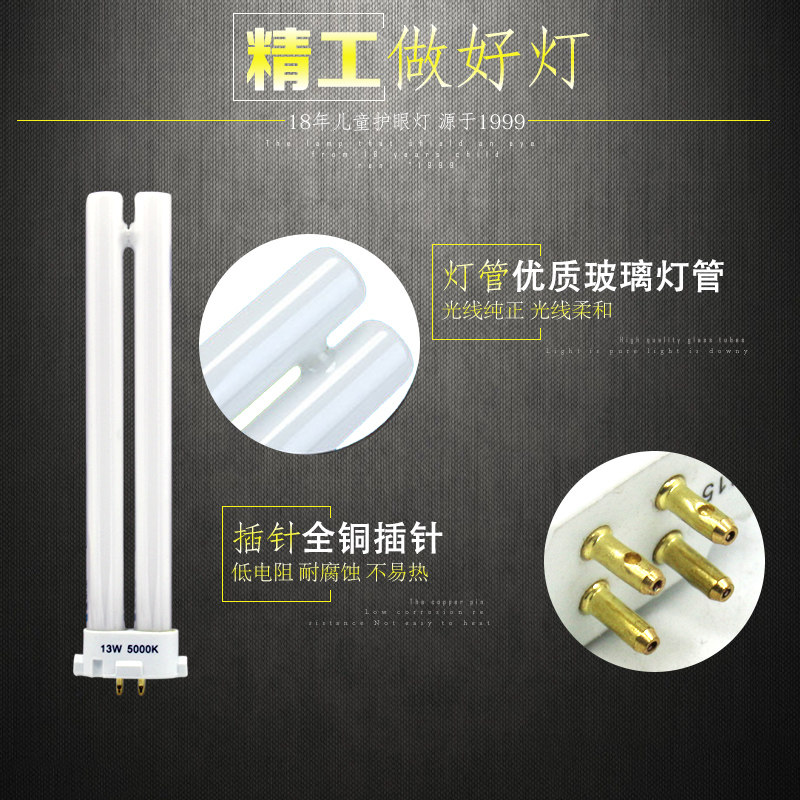Hasbro lamp tube 13w5000K original packaging fluorescent single H square four-pin two rows 13W eye protection table lamp tube