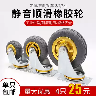 Universal wheel Heavy duty silent rubber caster with shaft brake 34 inch fixed steering pulley Hand push plate car cart wheel