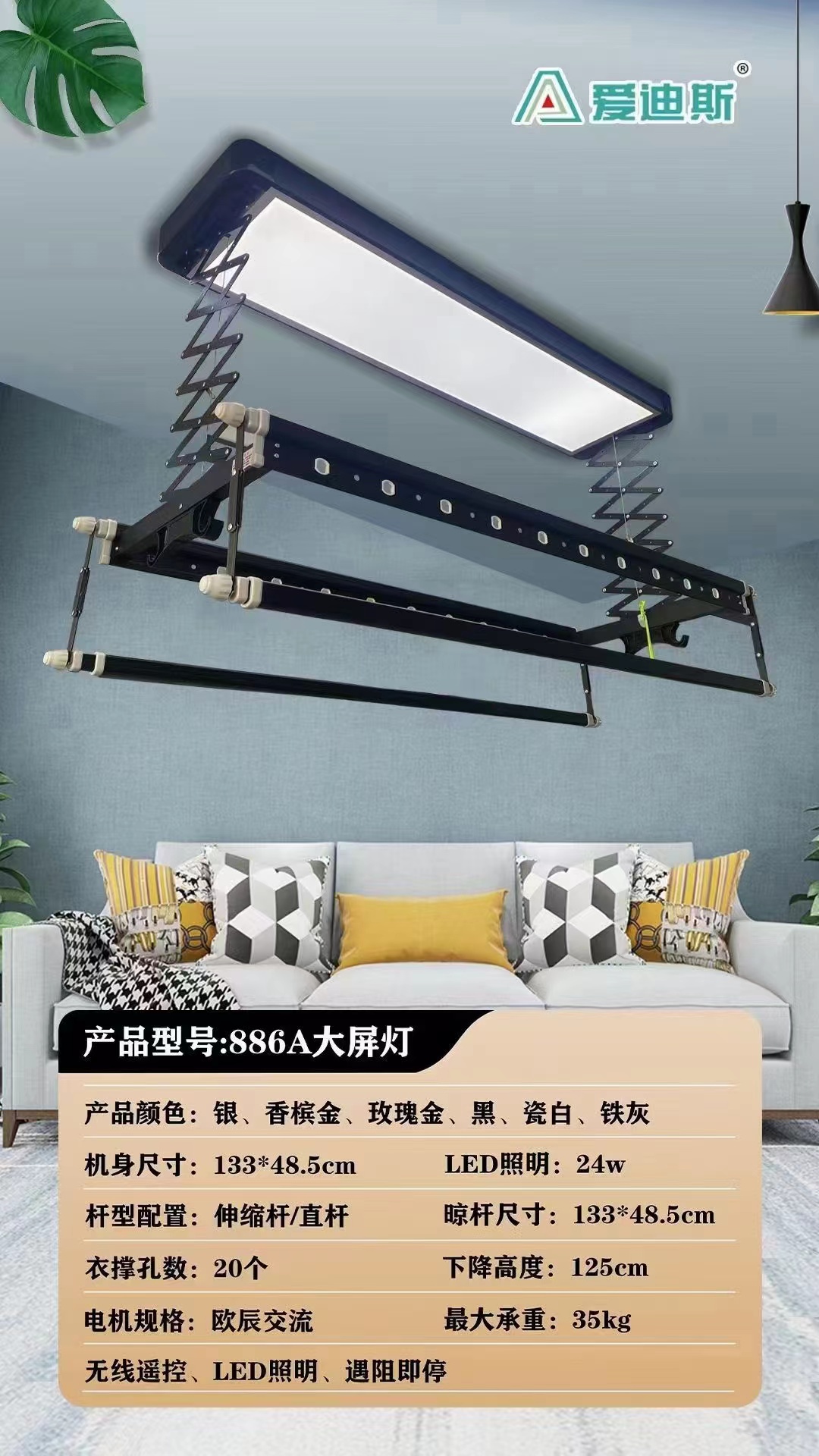 Electric clotheshorse large screen light to illuminate the intelligent remote automatic remote control lifting telescopic sunning machine double-cut control