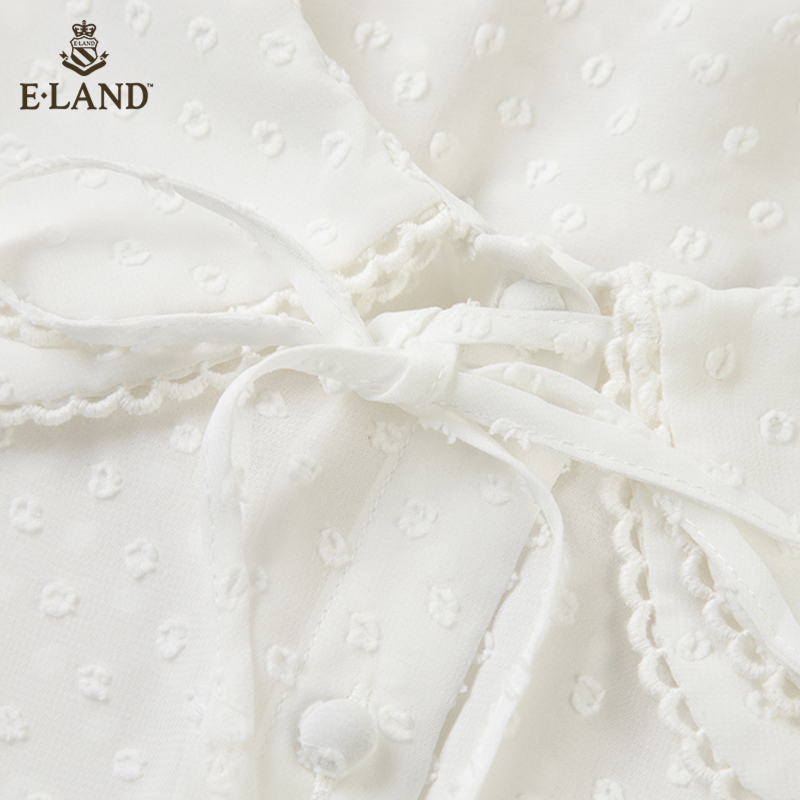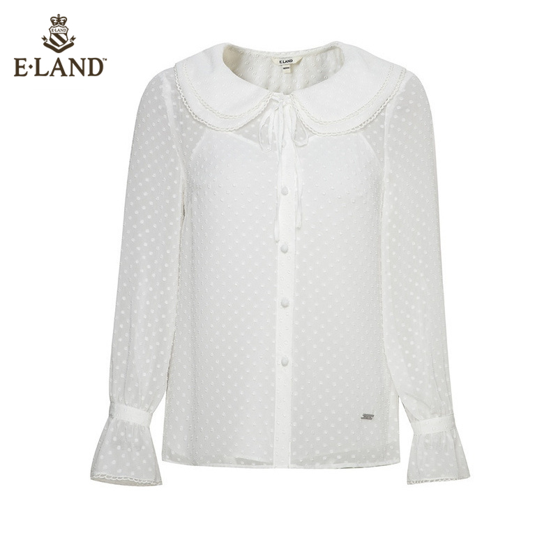 ELAND Clothes Romance Spring Summer Small Crowd Sweetness Fairy Doll Collar Design Sensation White Long Sleeve Shirt Lady
