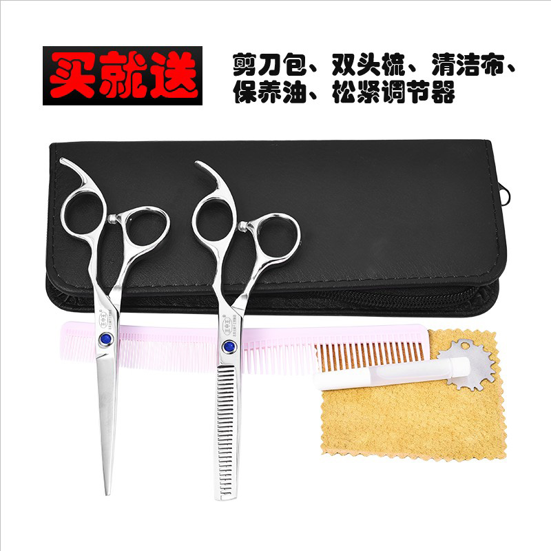 Flat scissors + tooth scissors two-piece set (package is more cost-effective) high-grade 6 chrome steel