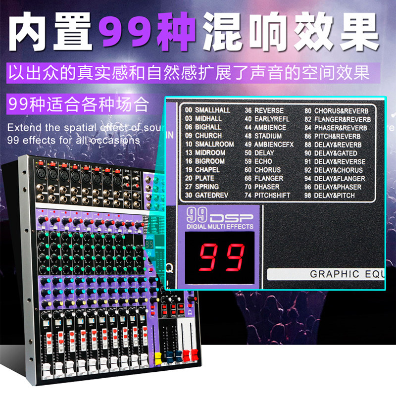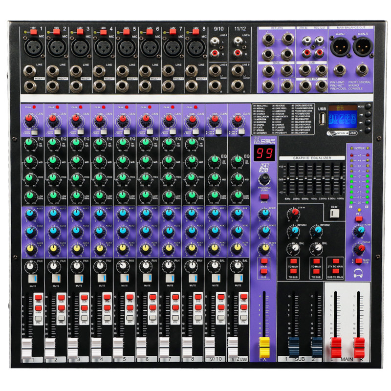 Vocal Arts 12 Luge Mixer with marshals Professional Stage Performance Conference K Song with Bluetooth 99 Mixer Effect