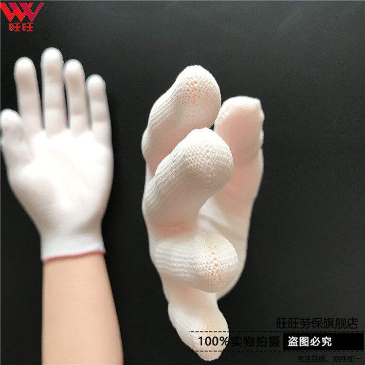 White nylon gloves labor insurance work thin elastic stickers women's four seasons cotton gauze gloves anti-static nano plate play tea picking