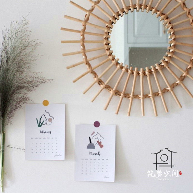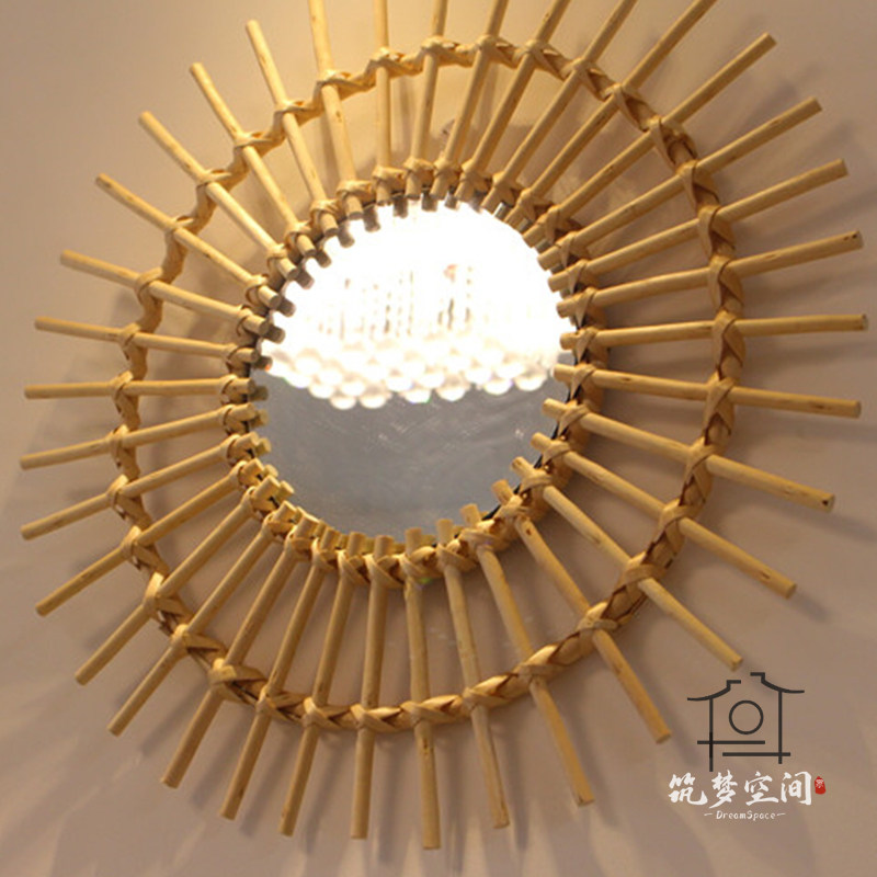 ins rattan woven makeup dressing mirror B&B simple modern creative wall hanging mirror French retro entrance hanging wall decoration
