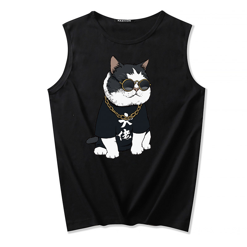 Kan Shoulder Vest Men's Pure Cotton Sports Round Collar Breathable Summer Loose Sleeveless T-shirt Students Step Up To Beat Undershirt