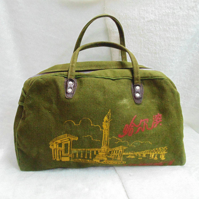 Props Cultural Revolution 60-70 Years Harbin Flood Flood Remembrance Taichi Canvas Lift Bag Handbags Small Travel Bag