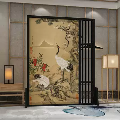 New Chinese-style Zen solid wood screen living room Mobile partition hollow hollow barrier barrier ancient wind seat screen pine crane Yenian