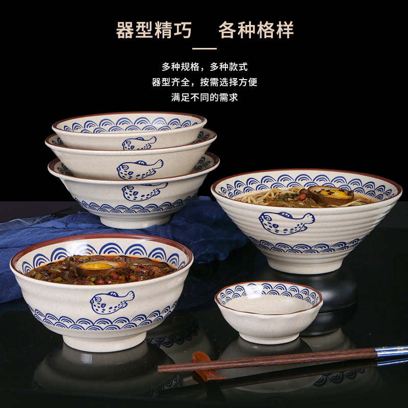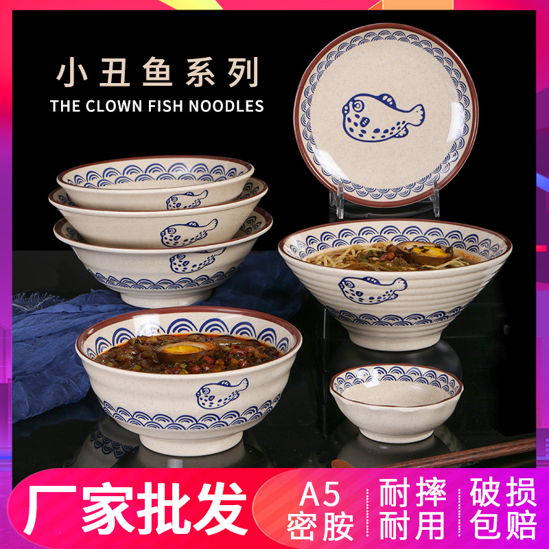 Melamine Knife Sharpened Noodle Bowl Soup Bowl Plastic Bowl Large Bowl Wonton Noodle Soup Noodles Rice Noodle Rice Flour Soup Powder Wonton Commercial Bowl