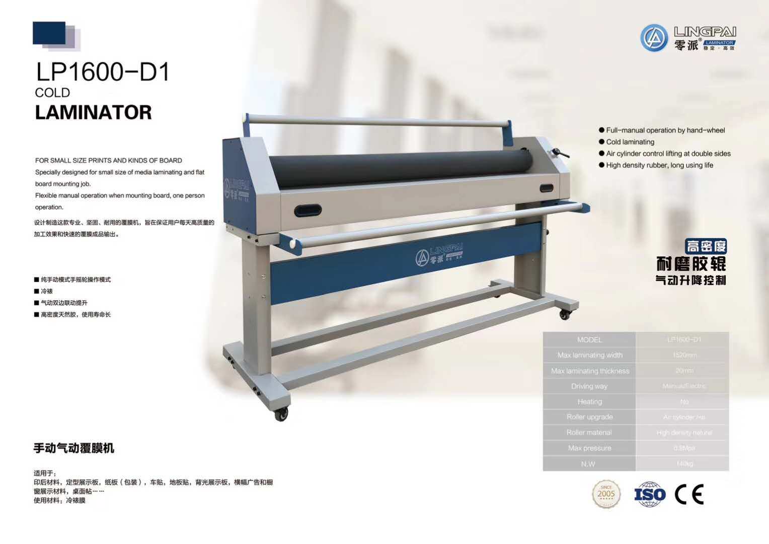 2020 new 1 6m pneumatic hand-cranked cold laminating machine Zero school D1 manual laminating film laminating KT board laminating machine laminating machine