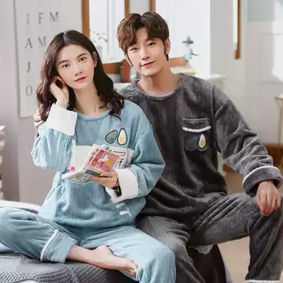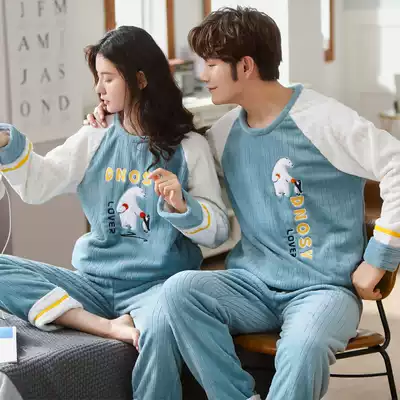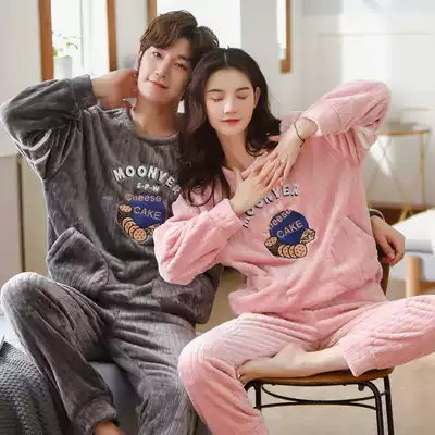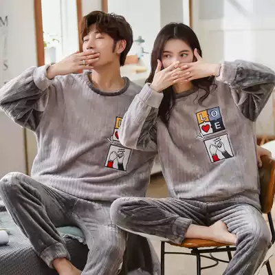 Autumn and winter coral velvet couple pajamas winter men's suit thickened and velvet en ACCO love pajamas women's home clothes