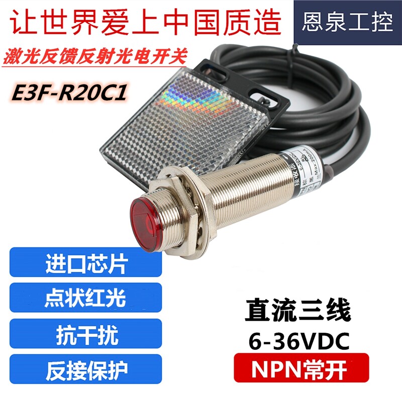 M18 laser feedback reflection photoelectric switch long-distance 20 m reflector adjustable visible light NPN three-wire normally open