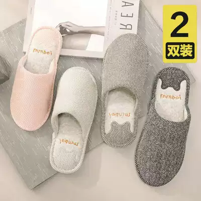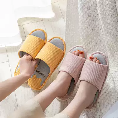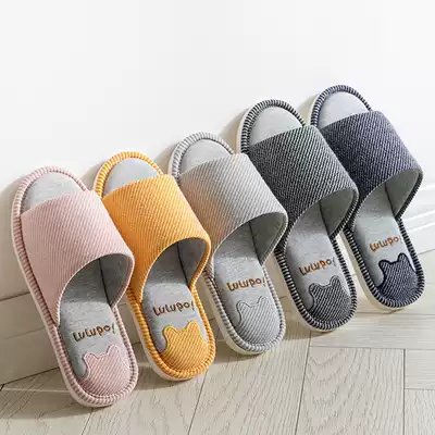 Slippers Female spring and autumn linen cotton linen indoor couple home household ins Male four seasons fashion guests mute pair