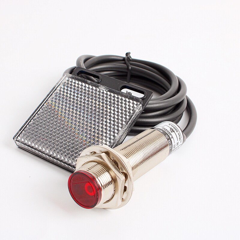 M18 laser feedback reflection photoelectric switch long-distance 20 m reflector adjustable visible light PNP three-wire normally closed