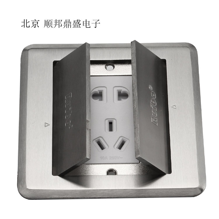 Ground socket stainless steel waterproof concealed ultra-thin double door ground plug power five-hole floor insert ground socket